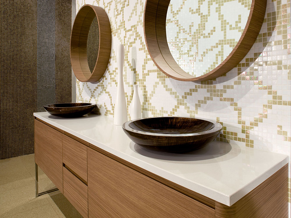Trend favorise un usage savant de la technologie, avec une attention particulière à l’environnement. La marque italienne de mosaïques et de dalles en aggloméré développe sans cesse des produits qui correspondent aux nouvelles tendances… Elle propose des produits en verre coloré, des émaux vénitiens, de tesselles à feuille d'or et des agglomérés de verre, quartz et granit.