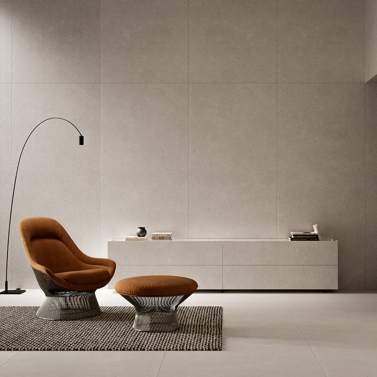 Terza Dimensione, vloerbedekking en grote wandtegels in keramiek, maar ook meubel- en decoratie-elementen, design et originaliteit.